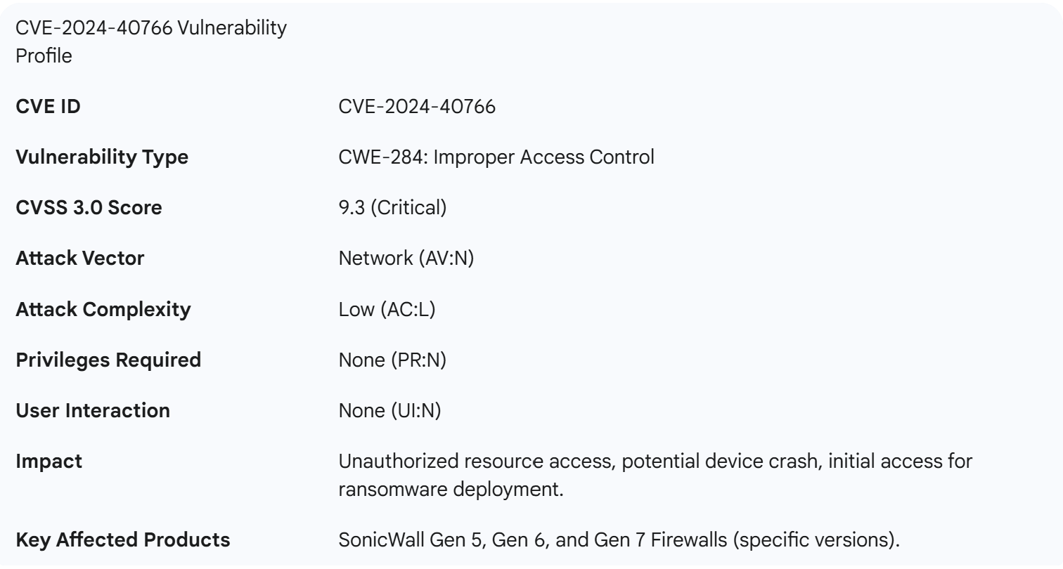 The foundation of this threat is a critical, remotely exploitable vulnerability, identified as CVE-2024-40766, affecting a wide range of SonicWall SSL VPN devices. These devices are a common feature in Australian corporate networks, serving as the primary gateway for remote access and making them a high-value target for malicious actors. The vulnerability's severity is compounded by the fact that it is being actively and aggressively exploited in the wild.